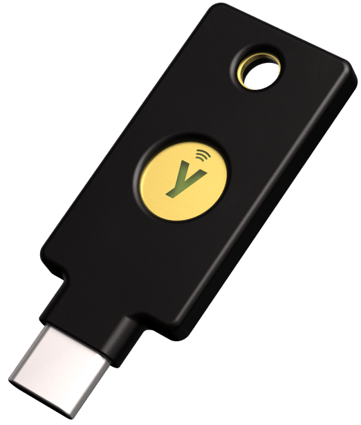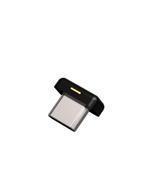 Similar to the YubiKey 5C, but in a compact form factor that can be left plugged into a USB-C port without protruding.